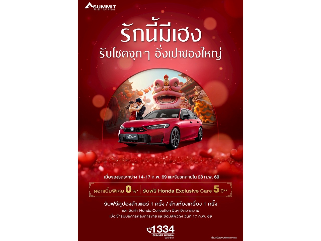 วาเลนไทน์และตรุษจีนปีนี้ ต้องบอกว่า ‘รักนี้มีเฮง’ ที่โชว์รูม ซัมมิท ฮอนด้า ออโตโมบิล ทุกสาขา14-17 กุมภาพันธ์ 2569