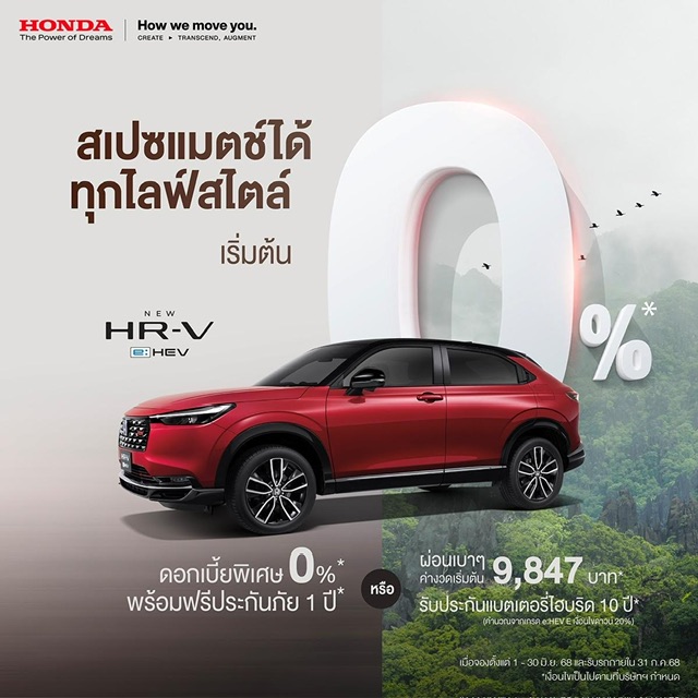 ลูกค้าที่กำลังมองหารถใหม่อยู่ ห้ามพลาด ! บริษัท ฮอนด้า ออโตโมบิล (ประเทศไทย) จำกัด ส่งโปรโมชันพิเศษกลางปีสุดคุ้มค่า ด้วยรถฮอนด้าหลากหลายรุ่นที่พร้อมตอบโจทย์ไลฟ์สไตล์ กับหลากหลายข้อเสนอ* ให้คุณเลือก ไม่ว่าจะเป็นสายดอกเบี้ย 0% ผ่อนชิลๆ พร้อมฟรีประกันภัย หรือ ฟรี Honda Exclusive Care แพ็กเกจสุดคุ้ม ครอบคลุมตั้งแต่วันออกรถใหม่ มอบความอุ่นใจในระยะยาวสูงสุด 5 ปี หรือ 140,000 กม.* หรือเลือกรับโปร ‘Double Smile Plus’ กับช้อยส์ที่ตรงใจสไตล์คุณ ออกรถที่ใช่ ดาวน์น้อยเริ่มต้นเพียง 10% หรือผ่อนน้อย ค่างวดต่อเดือนสบาย ๆ ก็เป็นเจ้าของรถฮอนด้าได้ง่าย ๆ เสริมความมั่นใจยิ่งขึ้นในการเป็นเจ้าของรถฟูลไฮบริด e:HEV ของฮอนด้าทุกรุ่น ด้วยการรับประกันอายุการใช้งานแบตเตอรี่ไฮบริดถึง 10 ปี พิเศษยิ่งขึ้นกับแคมเปญ Honda Happy Trade-in รถเก่าแลกซื้อรถใหม่** เมื่อนำรถยนต์คันเก่ามาขาย และออกรถยนต์ฮอนด้าคันใหม่รุ่นที่ร่วมรายการที่โชว์รูมฮอนด้า รับสิทธิพิเศษเพิ่มเติมสูงสุดถึง 100,000 บาท* สำหรับลูกค้าที่จองตั้งแต่ 1 มิถุนายน 2568 – 30 มิถุนายน 2568 และรับรถภายใน 31 กรกฎาคม 2568