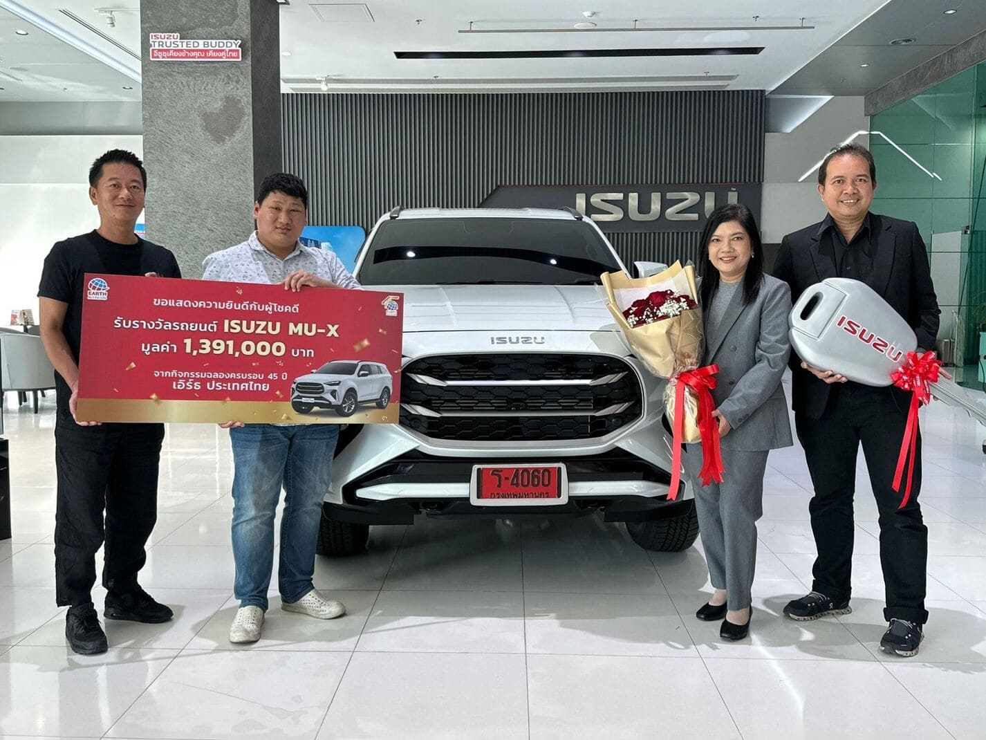 สิ้นสุดการรอคอยเอิร์ธฉลองครบรอบ 45 ปีเผยโฉมผู้โชคดีได้รับรางวัลใหญ่รถยนต์ Isuzu MU-X 2.2 Elegant 8AT มูลค่า 1,391,000 บาทสร้างรอยยิ้มและเติมเต็มความสุขให้กับลูกค้าปิดจบแคมเปญอย่างยิ่งใหญ่ด้วยความประทับใจ