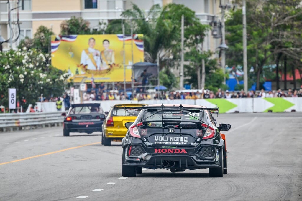 การแข่งขันรถยนต์ทางเรียบแถวหน้าของไทยรายการ “ฮอนด้าวันเมคเรซ 2025″ อีเวนต์สุดท้ายดวลความเร็วสนาม 7-8 เมื่อสุดสัปดาห์ที่ผ่านมาที่สนามพีทีสงขลาสตรีทเซอร์กิตจ.สงขลาภายใต้การลุ้นแชมป์ประจำปีที่เข้มข้นซึ่งจะต้องตัดสินกันใน 2 สนามสุดท้ายนี้ โดยมี “สิทธิ์ร่วมทีมในเครือ HRC” เข้าร่วมแข่งขันในรายการ “ซูเปอร์ไทคิว” สุดยอดเรซของประเทศญี่ปุ่นเป็นเดิมพัน