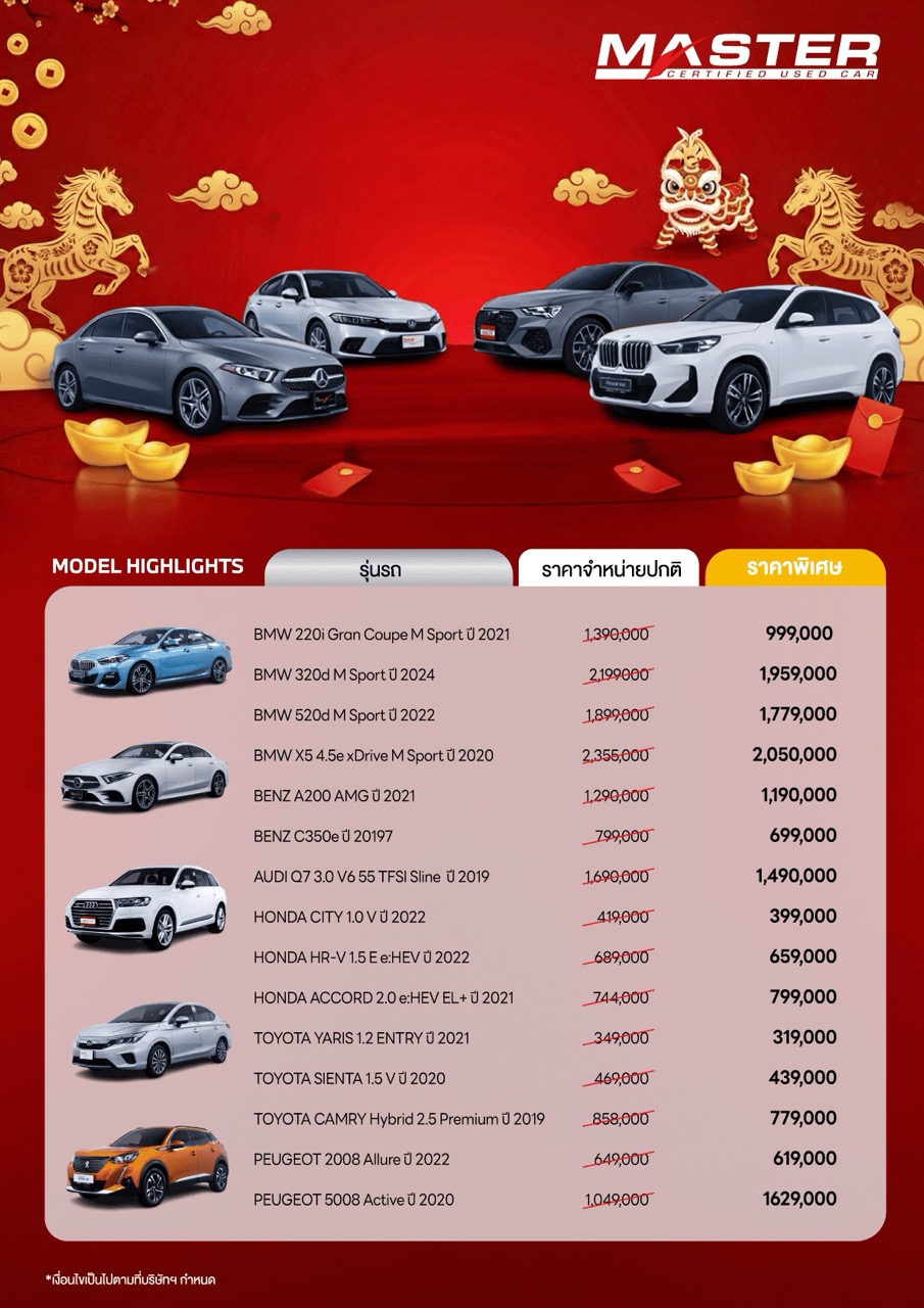 มาสเตอร์ เซอร์ทิฟายด์ ยูส คาร์ จัดใหญ่รับวาเลนไทน์และตรุษจีน กับแคมเปญ ‘The Perfect Match & Chinese New Year Special’ ยกทัพยนตรกรรมพรีเมียม ไมล์น้อย ราคาดี การันตีคุณภาพ รวมกว่า 300 คัน พร้อมข้อเสนอสุดพิเศษ ตลอดเดือนกุมภาพันธ์ 2569