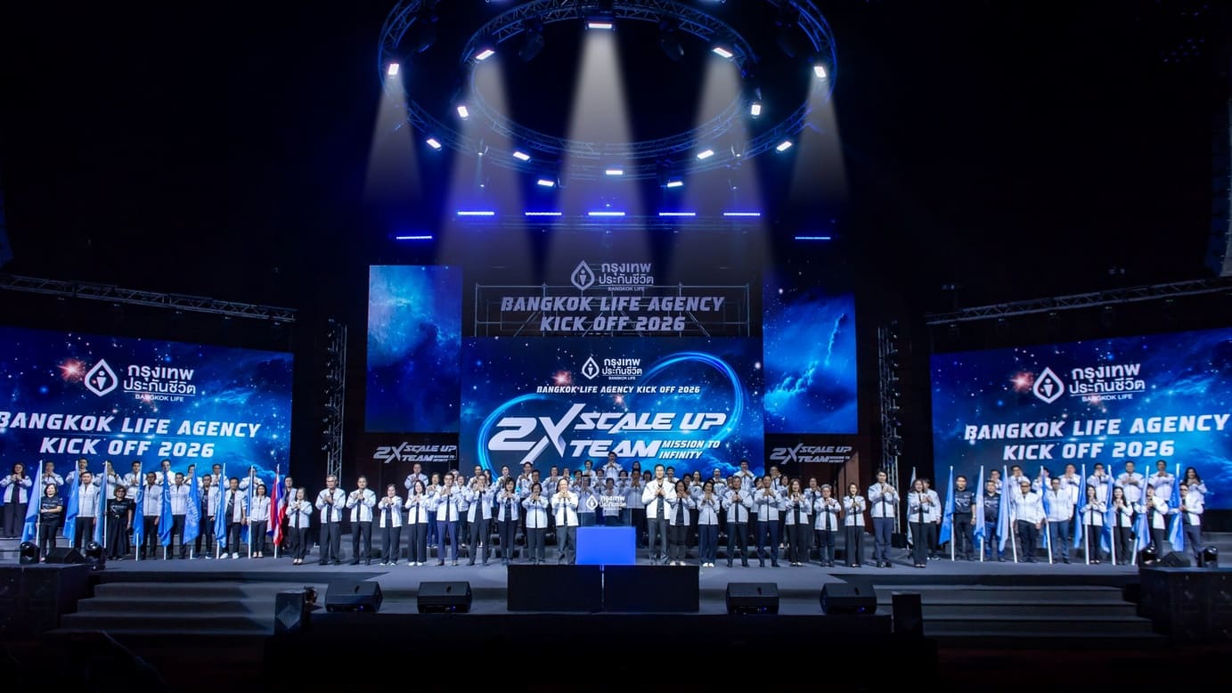 กรุงเทพประกันชีวิตเปิดศักราชใหม่ 2569 จัดงานยิ่งใหญ่แห่งปี Bangkok Life Agency Kick Off 2026 ตั้งเป้าหมายสร้างการเติบโตแบบสองเท่า 2X Scale Up Team: Mission to Infinity ผ่านตัวแทนประกันชีวิตและที่ปรึกษาการเงินโดยวางเป้าหมายยกระดับช่องทางตัวแทนฯอย่างเป็นระบบทั้งการเพิ่มศักยภาพคนทีมงานและระบบสนับสนุนต่างๆพร้อมปักธงนโยบายสร้าง ‘Life Care Partner’ ที่ใส่ใจลูกค้ารอบด้านตามวิสัยทัศน์มุ่งสู่การเป็นบริษัทประกันชีวิตอันดับหนึ่งด้านความใส่ใจสู่การเติบโตอย่างยั่งยืนในระยะยาวโดยมีดร.ศิริการเจริญดีประธานกรรมการนายโชนโสภณพนิชกรรมการผู้จัดการใหญ่และประธานเจ้าหน้าที่บริหารนายจักรพงศ์แสงแก้วผู้ช่วยผู้จัดการใหญ่สายงานตัวแทนและที่ปรึกษาทางการเงินพร้อมด้วยกรรมการบริหารผู้บริหารระดับสูงและผู้บริหารตัวแทนประกันชีวิตและที่ปรึกษาการเงินรวมถึงตัวแทนประกันชีวิตจากทั่วประเทศร่วมงานกว่า 1,500 คนร่วมงานณทรูไอคอนฮอลล์ไอคอนสยาม