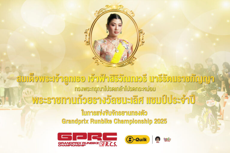 AUTOMOTIVEสมเด็จพระเจ้าลูกเธอ เจ้าฟ้าสิริวัณณวรี นารีรัตนราชกัญญา ทรงพระกรุณาโปรดเกล้าฯ พระราชทานถ้วยรางวัลชนะเลิศรายการ “Grandprix Runbike Championship Partnership with R.C.S.”